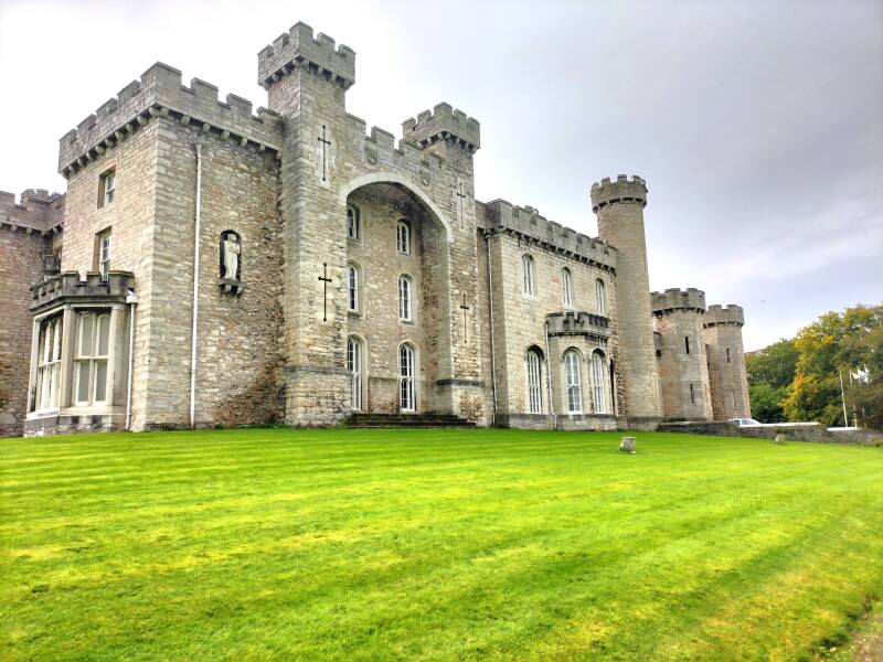 Ruthin Castle (0,00) is als hotel in gebruik. Mooi bouwwerk waar veel pauwen rondlopen. Het dorpje is ook heel aardig met een aantal mooie huisjes en andere gebouwen.