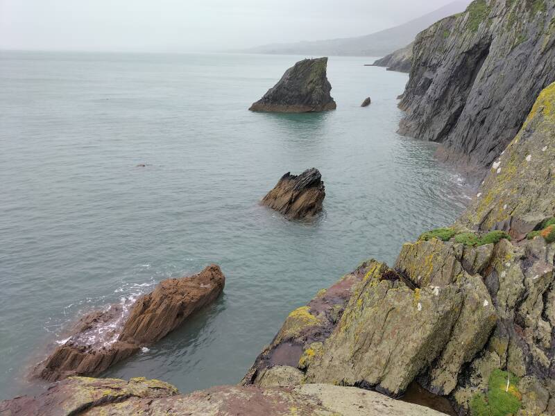 Naar Trevor voor de sea stacks aldaar. (Zie tips voor route) Een korte maar zeer natte wandeling nar mooie stacks. En dat washet helaas voor vandaag want een storm met heel veel regen is bijna gearriveerd en nooptons om terug naar de basis te gaan. De dorpen op dit schiereiland onder Caernarfon zal geen bezoek van ons krijgen, helaas.