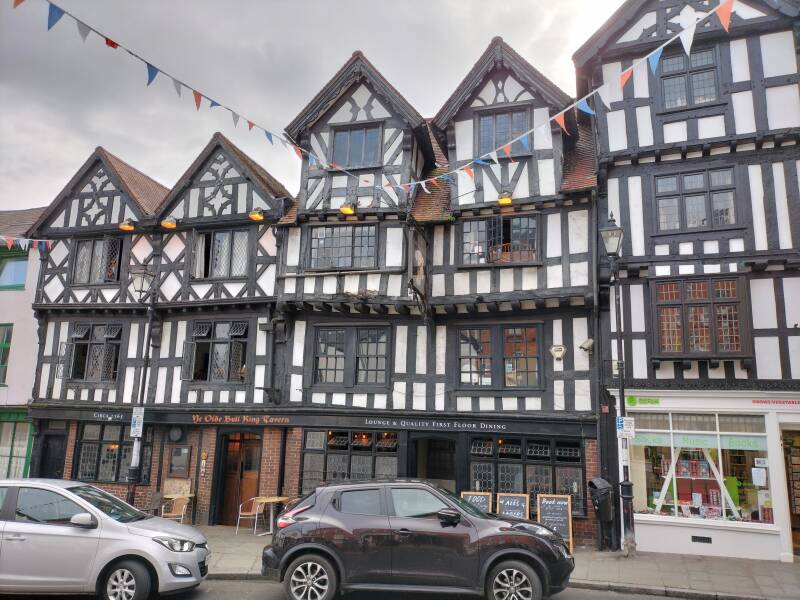 England : Chester. Wat een mooie stad met heel veel schitterende huizen, eindelijk. Helaas regent het maar gelukkig zijn hier gallerijen op de eerste verdiepingen, heel apart eigenlijk, dus blijven we grotendeels droog. Het plaatselijke kasteel is overigens niet bijzonder. Tenslotte naar Overton on Dee waar we voor weinig geld een zeer mooi, groot en comfortabel let hebben. Een let is een huisje op of bij de camping. 3 nachten